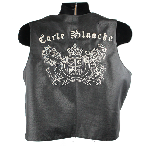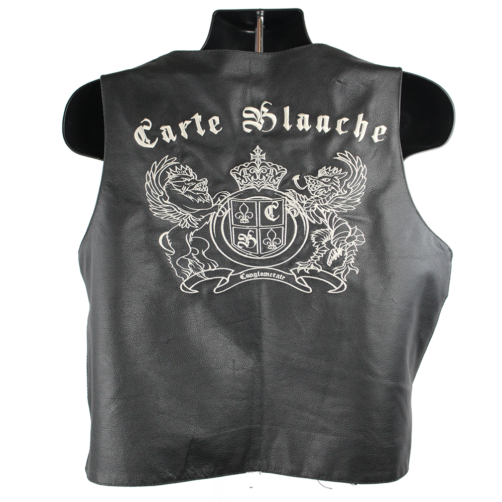 *Our all leather vest features a 20,000 stitch logo and name on front. it also includes a 180,000 stitch logo on back. Can be ordered in different colors .