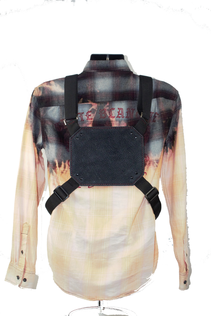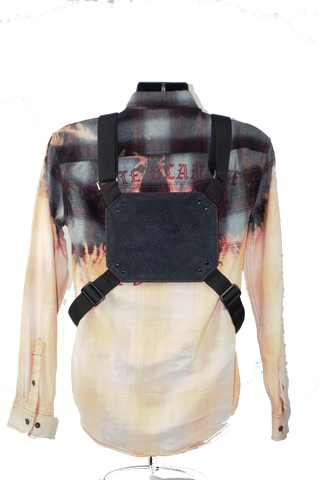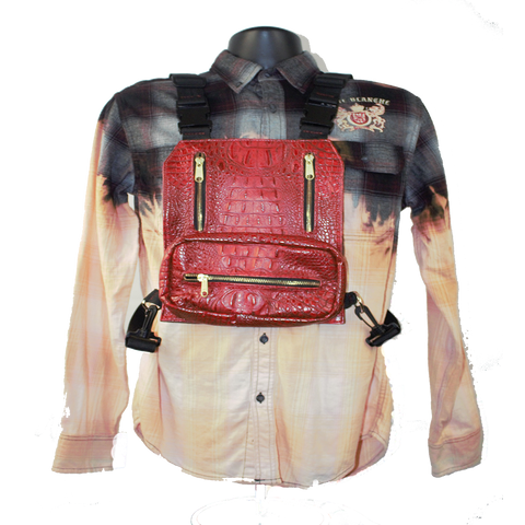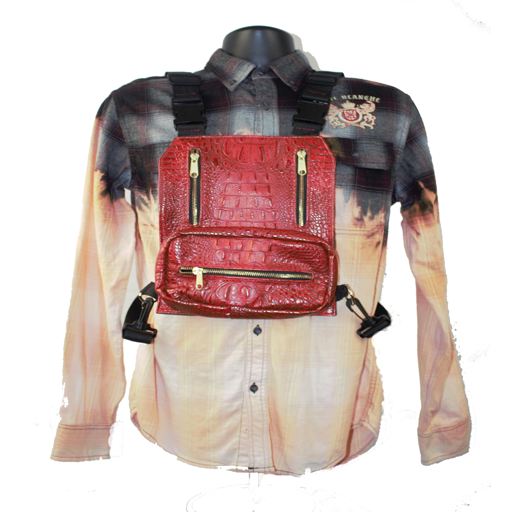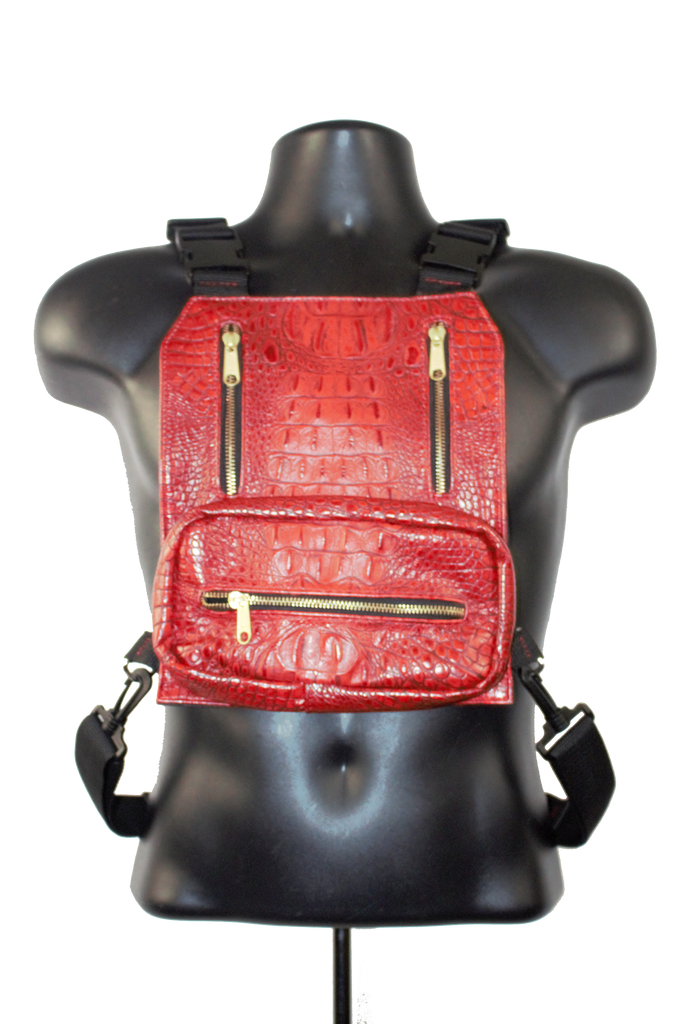 Hand stitched alligator chest rig original design brass zippers . Pre order for custom colors up to 6 weeks.